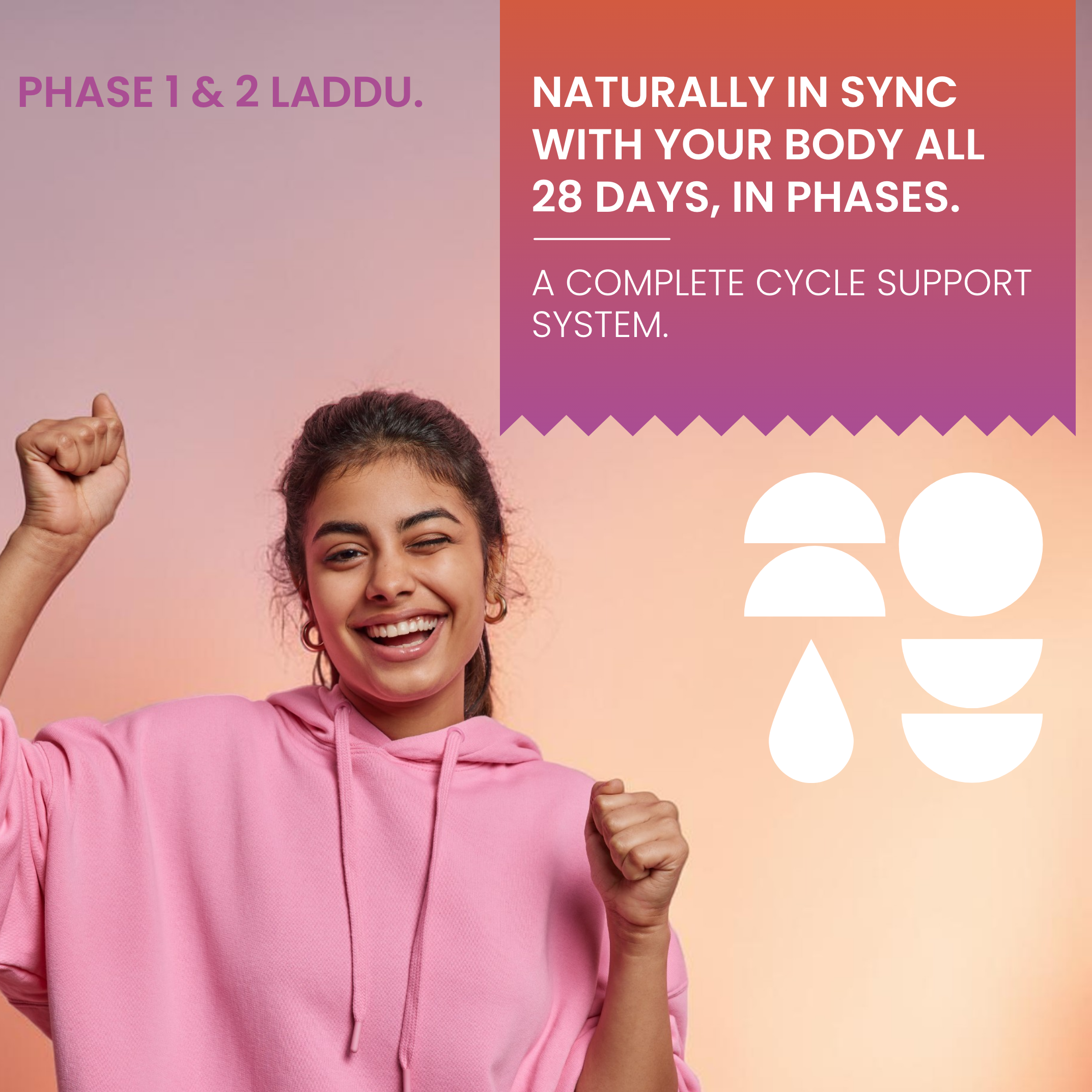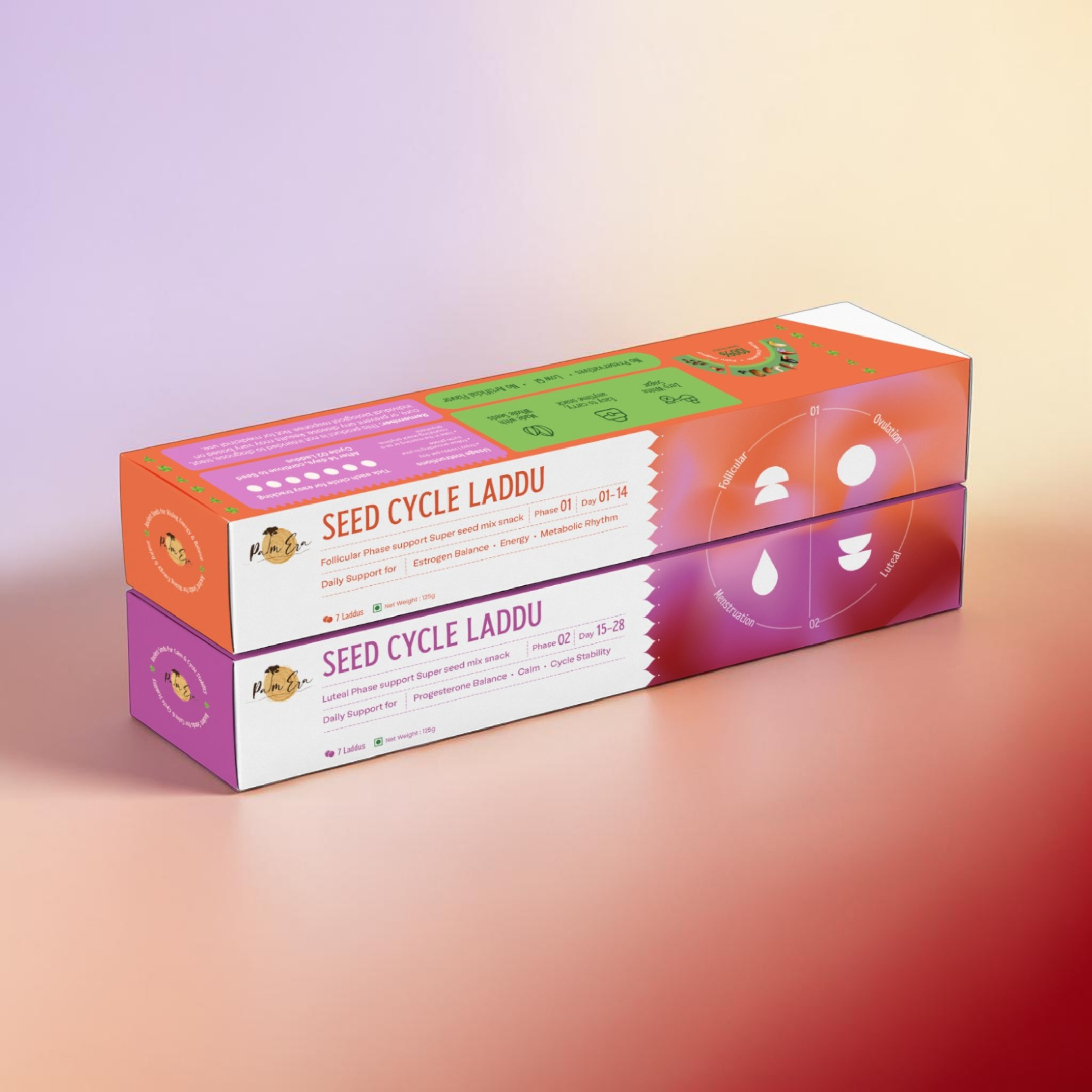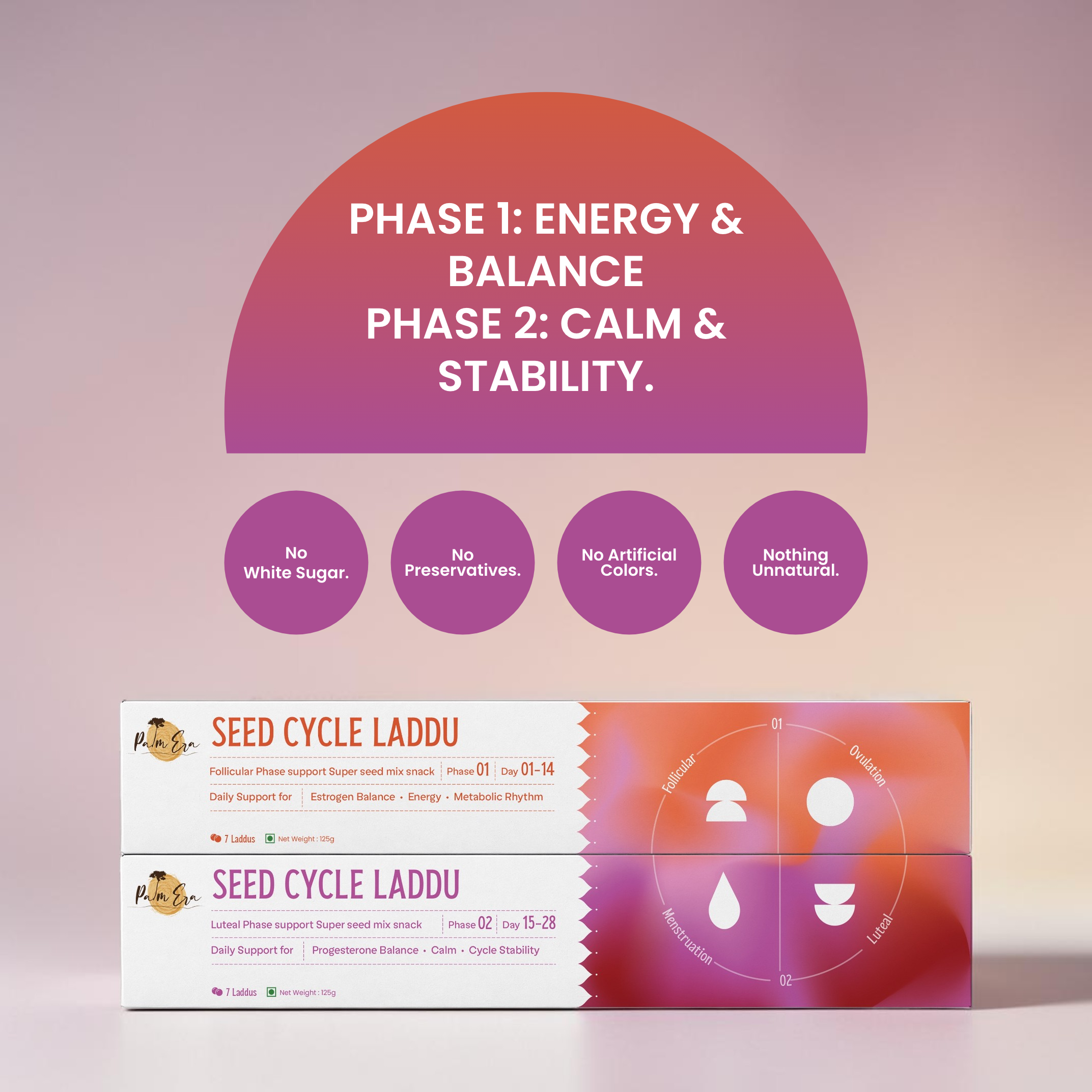 You get both Phase 1 and Phase 2 laddus so your body is supported throughout the entire cycle.