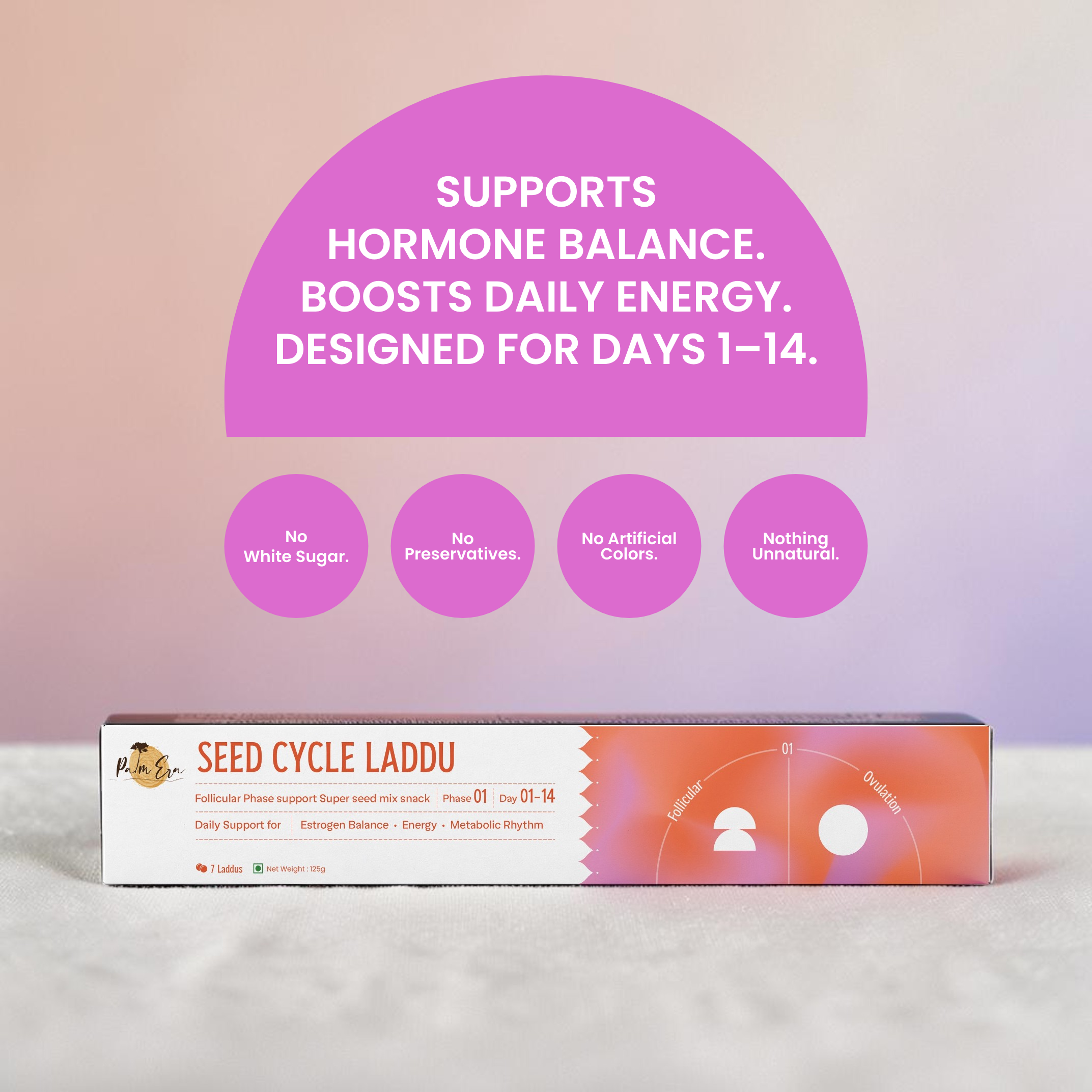 Seed Cycle Laddus Phase 1 is designed for the first half of your cycle from Day 1 to Day 14. This is the follicular phase where your body focuses on restoring energy, improving metabolism, and supporting estrogen balance.