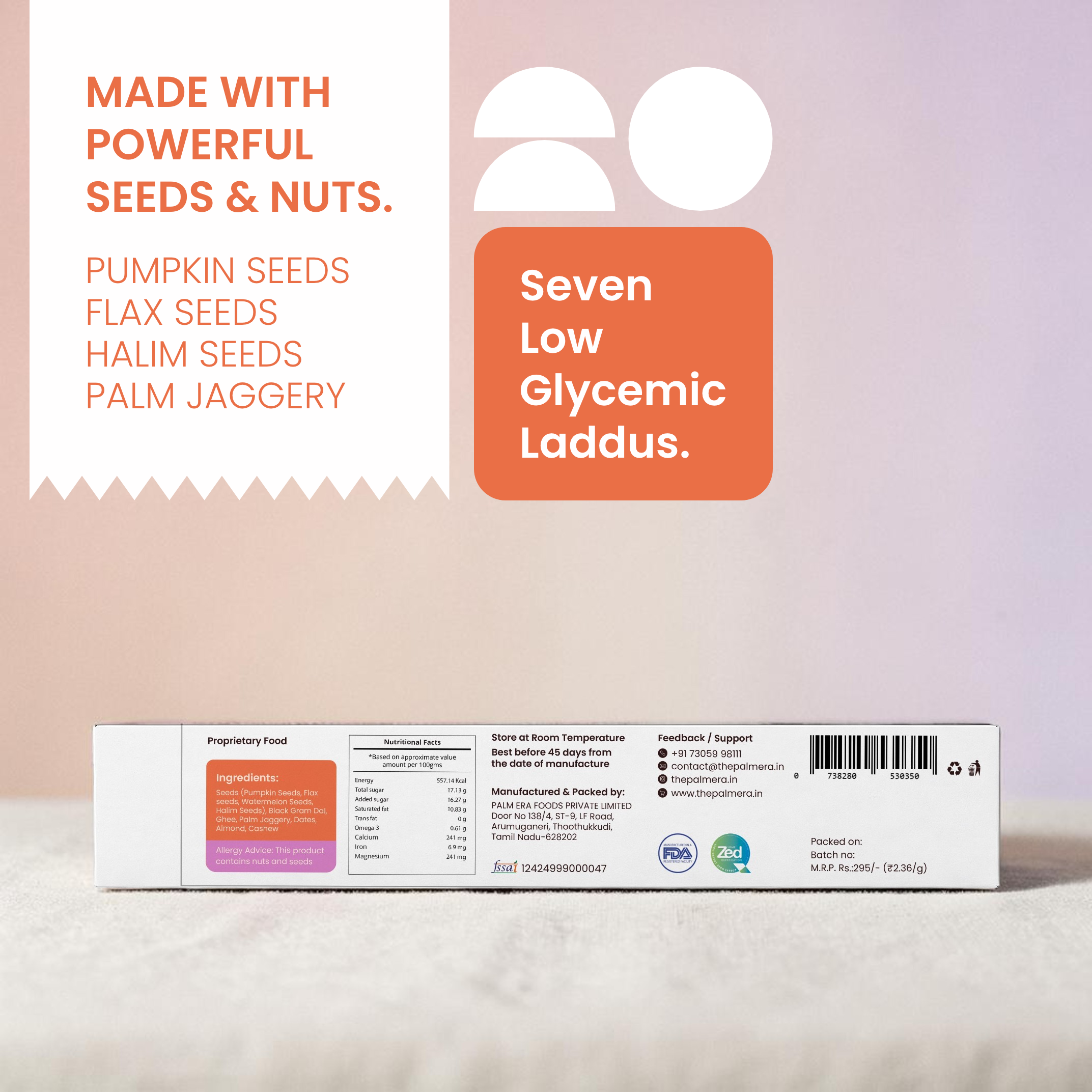 Made with real ingredients like pumpkin seeds, flax seeds, halim seeds, black gram, ghee, dates, almonds, cashews, and our signature low G.I. palm jaggery.